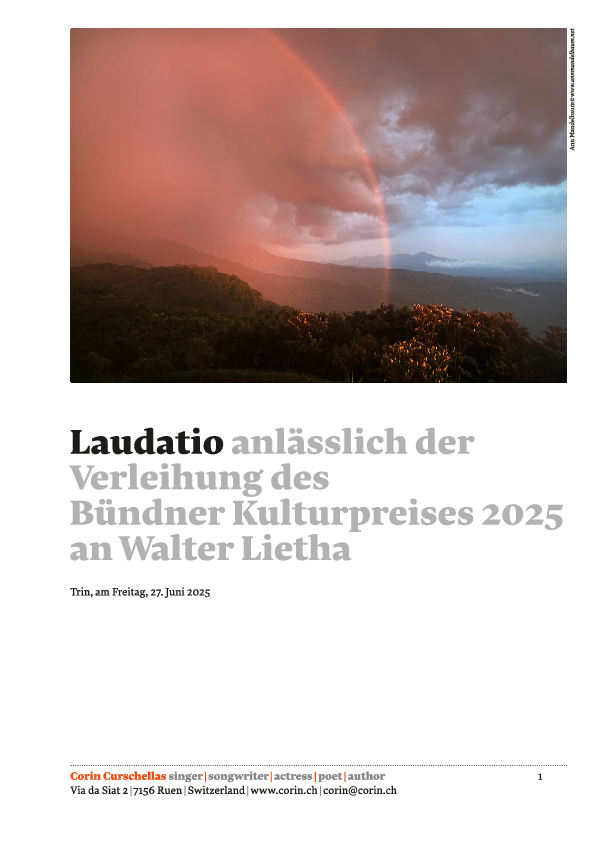 Jazz. World. Folk. Chanson. Archaische Volksmusik. Zeitgenössisch. Modern. Die "Grande Dame der Chanzun Rumantscha" ist von einer beispiellosen Vielfalt! Verschiedene Sprachen, zahllose Facetten und Ausdrucksformen, aber ein Herzschlag, eine Stimme. Eine unverwechselbare Intensität in jedem Format, in den intimsten und in den expansivsten Momenten…